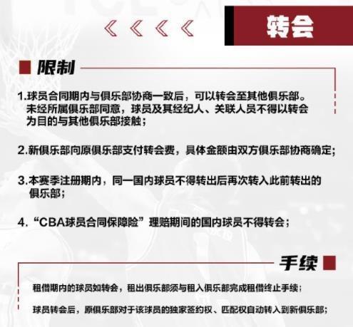 俗话说,无规矩不成方圆,有关CBA联赛球员的转会与租借,CBA官方出台了非常详细的规定。