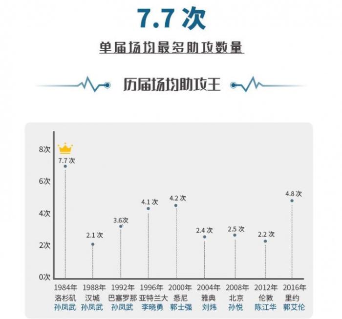 场均助攻数最多的是孙凤武在84年奥运会创造的7.7次,一直以来中国控卫在国际大赛上都被批评,比如抗压能力不行(被紧逼无法运球过半场)投篮不行等等。郭艾伦在助攻榜上也上榜了,16年场均4.8次助攻已经排在第二了,算是为自己证明了!