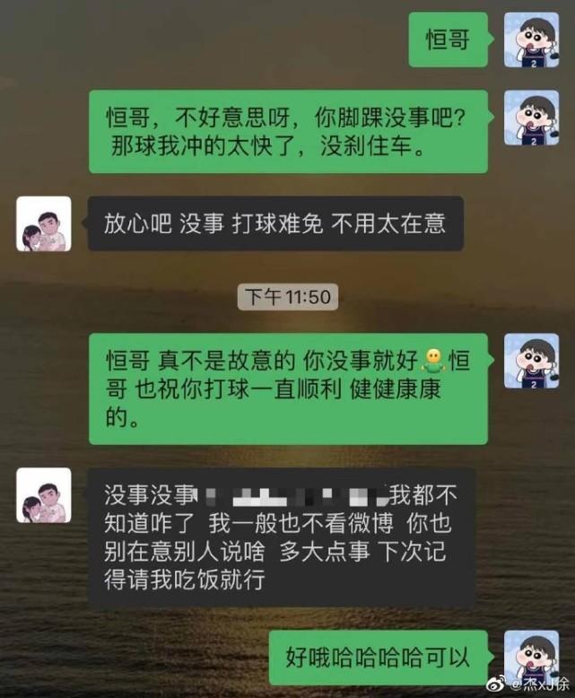 徐杰在社交媒体上写道:“谢谢恒哥的理解与大度——比赛结束自己第一时间向他说明了情况,当时拼抢非常激烈,防守动作没有收住,险些出现不该有的情况……感谢他的体谅,之后我一定会小心注意,健康是每个球员最大的财富,队友对手都一样! ”