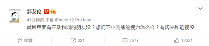 在辽宁和广厦的比赛里,郭艾伦得到14分,罚球6中5。赛后,郭艾伦更新社交媒体,疑似炮轰裁判,“WB里面有开动物园的朋友没?想问下小浣熊的视力怎么样?有闪光和近视没”。
