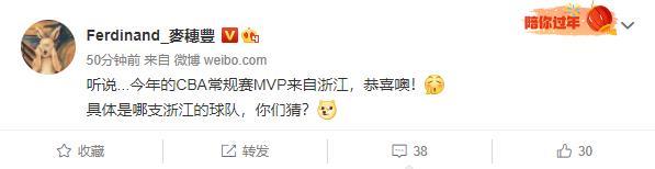 由于麦穗丰之前报道过多次有关CBA的内幕消息,所以他的话可信度还是非常高的。在这条动态之前,其实他还发布了另外一条动态,当时他说道:“听说...今年的CBA常规赛MVP来自浙江,恭喜噢!具体是哪支浙江的球队,你们猜?”