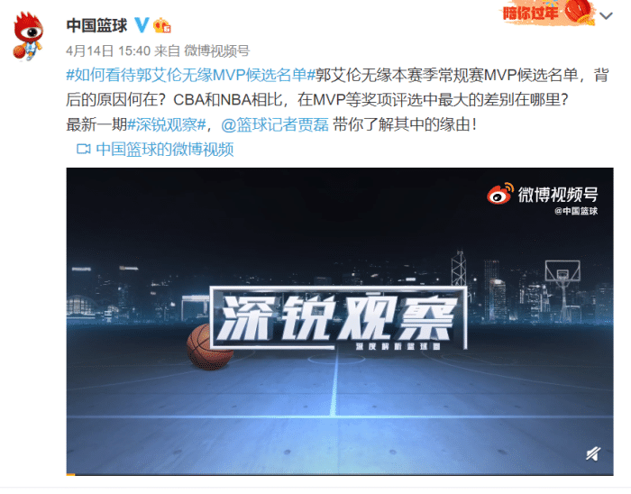 CBA官方考虑更改MVP候选人规则!郭艾伦:等我退役,就不会有这事了!