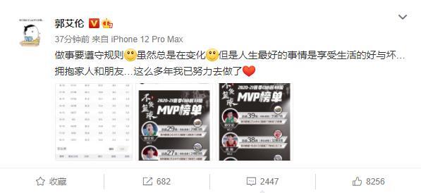 就在刚刚,郭艾伦本人亲自对这个问题进行了回应。郭艾伦在个人社交媒体上发布了3个表情,配了3张图图片以及说了5句话来表达自己的感受。郭艾伦表示:“做事要遵守规则,虽然总是在变化,但是人生最好的事情是享受生活的好与坏…拥抱家人和朋友…这么多年我已努力去做了。”