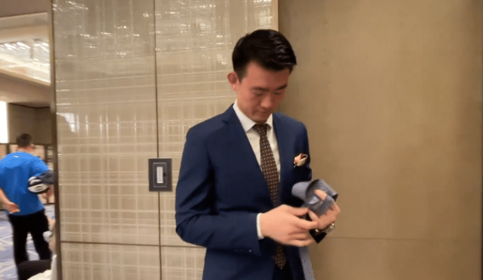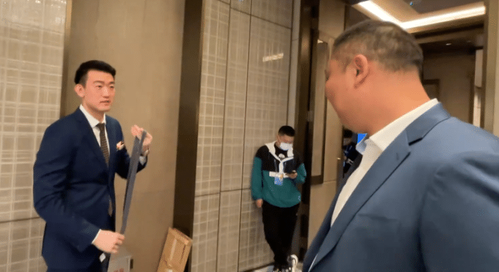 CBA全明星酒店花絮!王博给王晗打领带,吴前时尚,杨鸣闲庭信步
