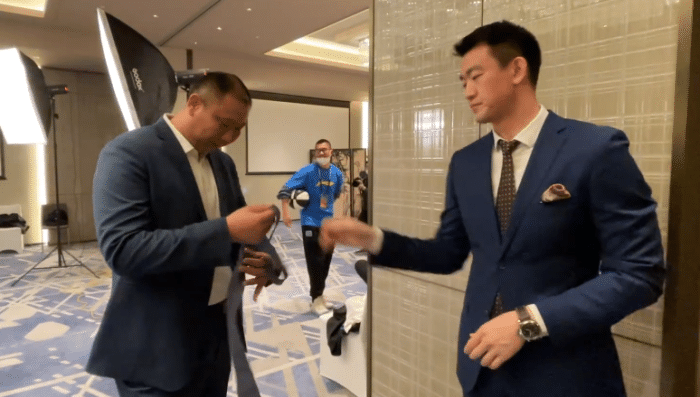 两位全明星星锐赛教头相遇,广厦主帅王博是南区主教练,吉林主帅王晗是北区主教练。相遇之后王晗不会自己打领带,还说这条领带太长了,记者问他那平时都是谁给你打领带啊?“胖虎”王晗表示“都是队医来弄”。