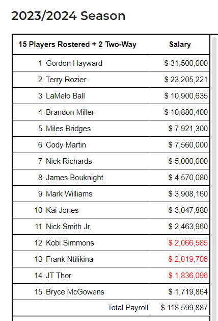 随着签下尼利基纳,黄蜂队队内已经有15位标准合同球员,他们分别是海沃德(3150万年薪队内第一)、罗齐尔、三球、布兰登-米勒、布里奇斯、科迪-马丁、尼克-理查兹、詹姆斯-布克奈特、马克-威廉姆斯、凯-琼斯、小尼克-史密斯、科比-西蒙斯、尼利基纳、JT-索尔和布赖斯-麦高恩斯。