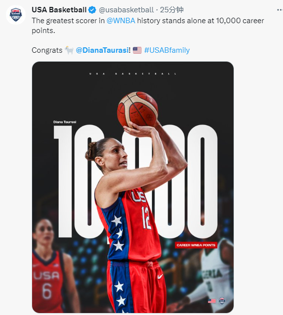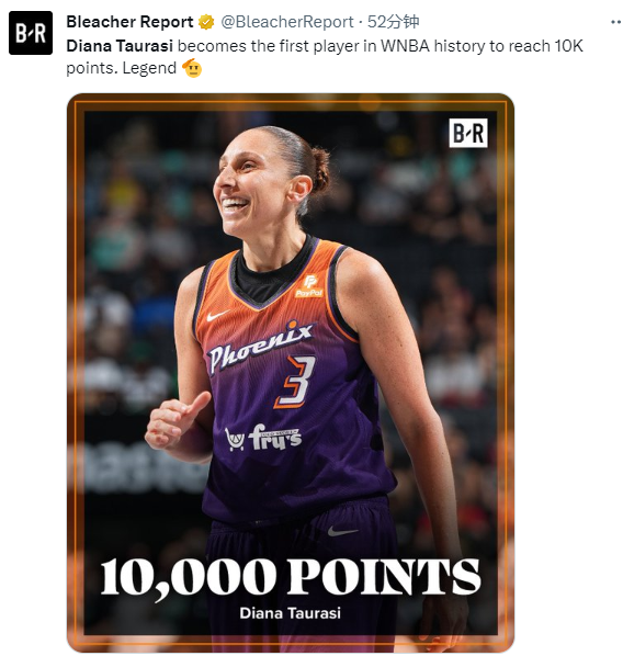 WNBA第一时间祝贺陶乐西:职业生涯10000分,WNBA历史得分王正式成为历史第一位10000分球员;NBA官方转发,太阳官方祝贺:恭喜陶乐西,THE GOAT(历史最佳)