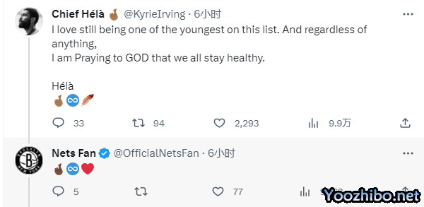 欧文回复道:我仍然是这个名单上最年轻的球员之一。不论如何,我都向上帝祈祷我们都能保持健康。