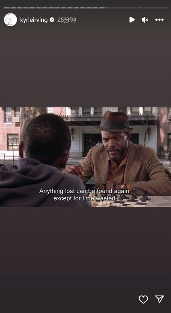 欧文晒出电影台词,图中写道:任何失去了的东西都可以失而复得,除了被浪费的时间。