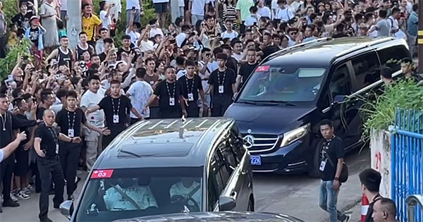 巴特勒坐着商务车来到村BA现场,大批安保人员护送,毕竟现场的球迷都可以看到巴特勒,他的人身安全也需要得到保障,这也可以理解的。