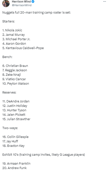 掘金官宣连签3人:20人大名单正式满额 约基奇领衔冲击两连冠