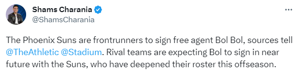 勇士队记Monte Poole则表示:萨里奇满足了勇士对于‘大个球员’的需求,他能够像小波特在2022年那个冠军赛季中那样做出很多贡献;勇士队将萨里奇视为一个得分威胁点——在他活跃的6个赛季中有4个赛季场均得分能达到两位数。这为传统的、欠缺投篮能力的大个子卢尼和追梦提供了一个节奏的变化,他们之间可以互补。