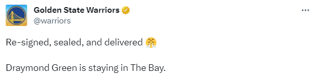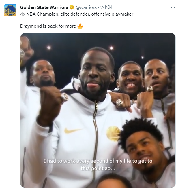 勇士官宣与格林续约