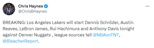 八村垒终于进入首发阵容,搭档詹姆斯和浓眉首发出战;另外湖人中锋班巴因伤连续缺席9场比赛,终于回归,可以出战西决G4。