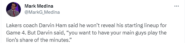 哈姆表示西决G4,主力球员将尽可能多地上场。