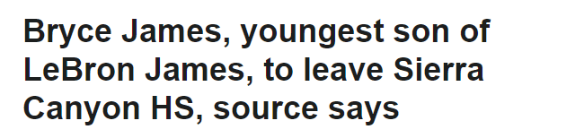 布朗尼高中毕业并且选择南加州大学男篮,据ESPN记者Myron Medcalf报道,老詹的二儿子也离开塞拉峡谷高中,并且将前往坎贝尔霍尔。