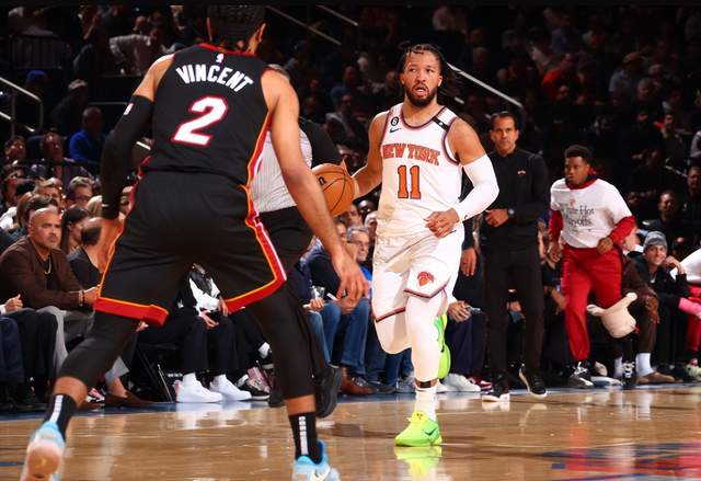 24直播网05月03日讯 NBA东部半决赛尼克斯主场111-105击败热火,将系列赛比分扳成1-1平。本场比赛,双方激战到最后阶段。关键时刻,布伦森、兰德尔和哈特联袂发挥,凭借着积极的拼劲,最终击败对手,避免带着0-2的比分前往迈阿密。尼克斯内外线巴雷特、兰德尔和布伦森合砍79分20板,发挥出色。但热火队此役展现的疯狂斗志,也足以令人肃然起敬。