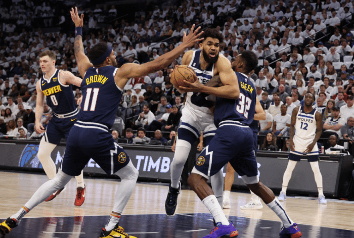 末节森林狼大部分时间占据主动权,第四节2分36秒森林狼96-82领先12分,之后约基奇轰进三分吹响反扑号角,小波特连续命中2记三分,约基奇强硬上篮,关键时刻造犯规两罚一中(若两罚全中,约基奇有望准绝杀),掘金144秒12-0扳平比分,生死时刻,爱德华兹运球失误,小布朗三分超时,两队打进加时赛。