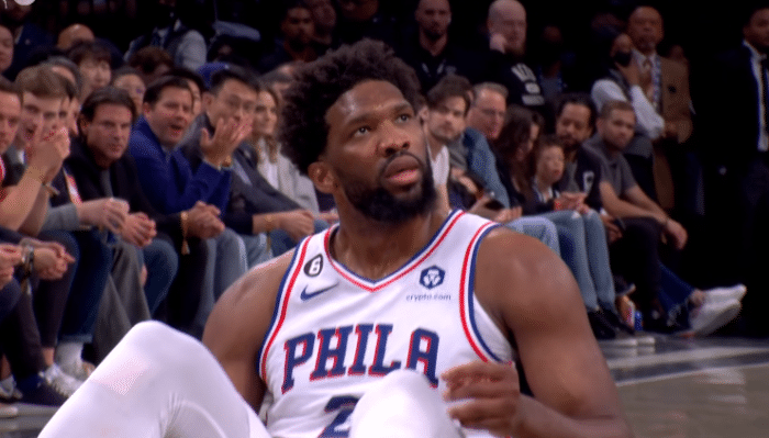 下半场第三节7分多钟,恩比德防守时几乎坐到约翰逊的脑袋,随后别到膝盖痛苦倒地,一瘸一拐走回替补席,之后恩比德回到场上,险些遭遇伤病;值得一提的是,第一节最后阶段,恩比德曾突然返回更衣室。