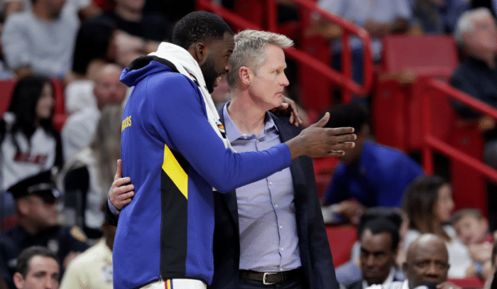 “德雷蒙德今天出现在了训练场,他向球队发表了讲话,我们花了一分钟左右的时间在这上面,然后就投入到G3的准备工作中,现在我们会更多地关注卢尼、库明加,杰迈克尔-格林,安东尼-兰姆,看看他们如何来帮助球队。