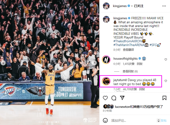 塔图姆在评论区留言:老兄你昨晚打了48分钟,快去睡吧。