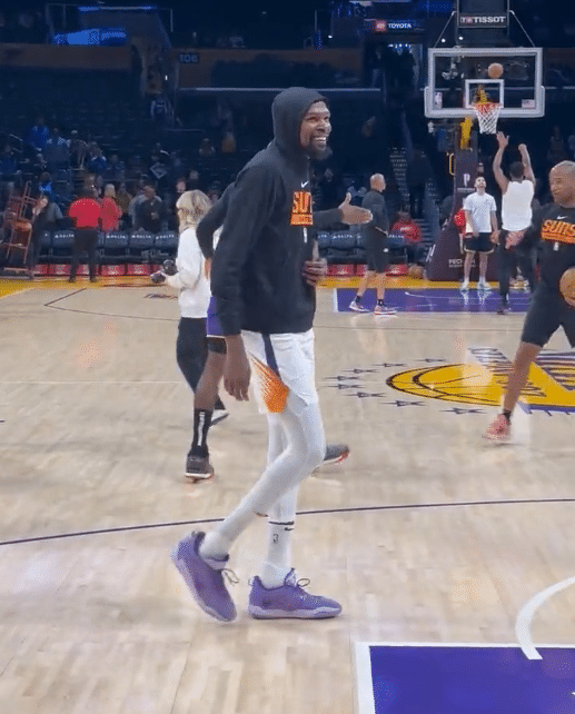 詹皇主动拥抱杜兰特:两人有说有笑开怀热聊 湖人三巨头确定出战太阳