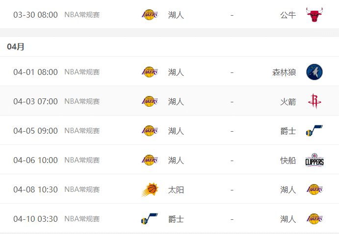 本赛季,湖人还剩下最后7场常规赛,先是五连客对阵公牛、森林狼、火箭爵士快船,包括客场背靠背作战;然后回到主场对阵太阳和爵士,7场比赛除了火箭已经无欲无求,其他五支球队都在争夺季后赛或者争夺更好的排名,对于湖人来说,这赛程很难打,每一场都要拼尽全力。