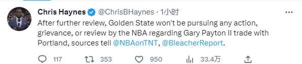 据名记Haynes报道,消息人士透露,在经过进一步的讨论后,勇士决定不会就加里-佩顿二世与开拓者的交易向联盟采取任何行动、申诉和复议。