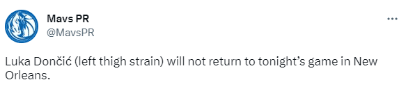 24直播网讯03月09日,NBA常规赛独行侠客场不敌鹈鹕排名掉到西部第7位,东契奇因左大腿拉伤提前退赛,上场27分钟,14投4中、三分5中1拿到15分8助攻3篮板1抢断,欧文全场24投10中、三分11中4拿到27分5篮板4助攻,下半场爆砍23分人仍输掉比赛,无奈麦科勒姆太狠,全场22投12中拿到32分以及末节16分顶住压力。