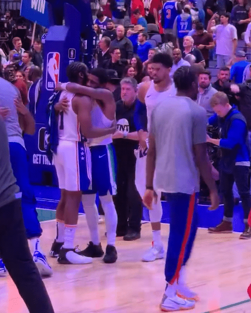哈登主动给欧文捏肩:两人赛后紧紧拥抱 东欧也和恩比德勾肩搭背热聊