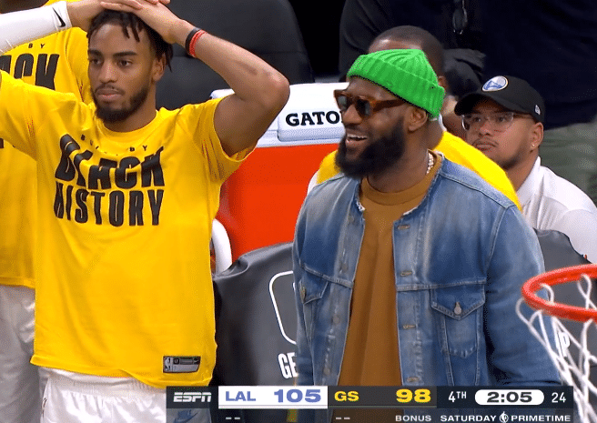 24直播网讯02月12日,NBA常规赛湖人客场击败勇士终结扎心的三连败,詹姆斯因伤继续休战,戴绿帽坐在场边观战,浓眉全场19投5中拿到13分16篮板3盖帽,关键时刻大帽汤普森和迪温琴佐;湖人新援范德比尔特首秀出色,替补上场16分钟7投5中拿到12分8篮板4助攻。