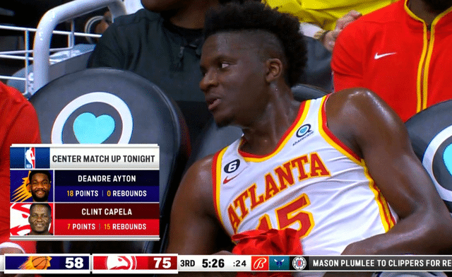 全场比赛,保罗13中5拿下15分8助攻表现平淡,反而是替补登场的奥科吉25分,韦恩莱特17分。而作为首发中锋的艾顿虽然投篮效率不错15中10拿下23分,但全场比赛仅抓下2个篮板球。而和他对位的老鹰中锋卡佩拉,全场比赛拿下17个篮板球,包括8个前场篮板!虽然艾顿一直以来都显得不够强硬,但全场2个篮板的表现,实在令人难以相信这是这是2米11状元秀的表现。