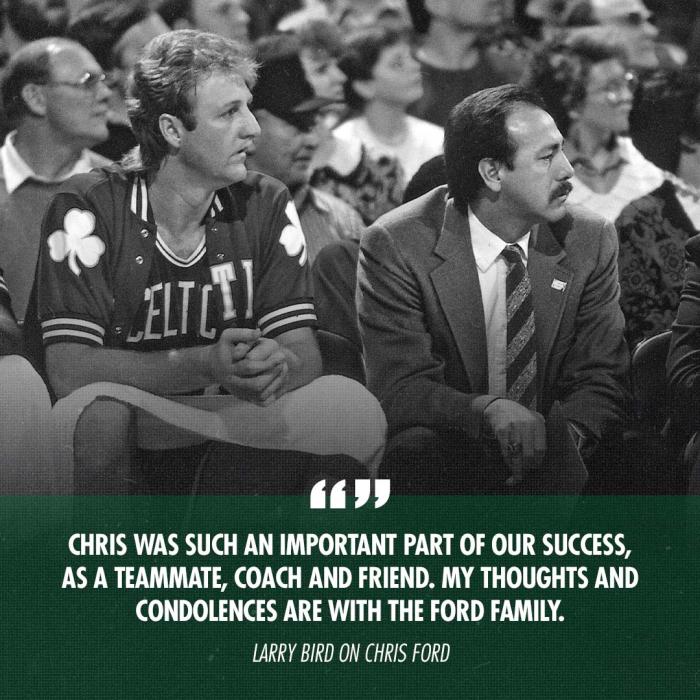 拉里-伯德谈及此事,表示:克里斯是我们取得成功的重要一部分,作为队友、教练和朋友,我的思念和哀悼与福特一家人同在。