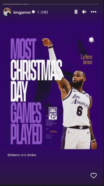 詹姆斯职业生涯第17次出战年终大战,超越科比成年终大战出战次数最多的球员,赛后詹姆斯在社交媒体上晒出场超越科比的历史纪录。