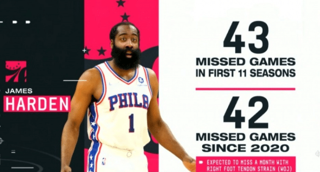 最近2个赛季,哈登频频遭遇伤病的困扰,据统计,在生涯前11个赛季,哈登仅缺席了43场常规赛;可是自20-21赛季起,哈登总计已经缺战了42场常规赛,这还不包含未来他将缺席的比赛;下一场对阵尼克斯,哈登已经确定休战。