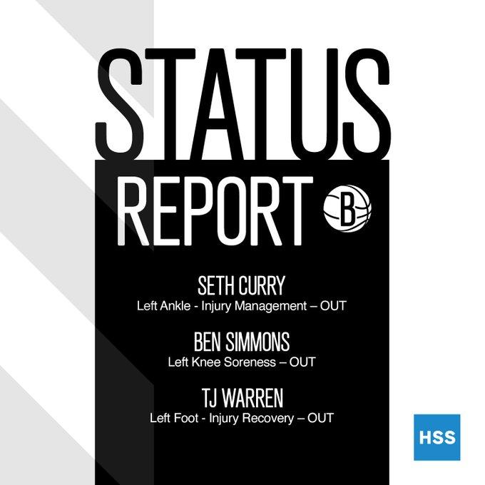 篮网伤情更新,西蒙斯(左膝酸痛)、赛斯-库里(伤病管理)和TJ-沃伦(伤病管理)都缺席今天与公牛的比赛,乔-哈里斯可以出战背靠背的比赛。
