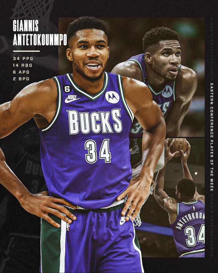 字母哥也是赛季首次当选,生涯第18次夺得周最佳,雄鹿官方第一时间恭喜字母哥获奖;赛季至今,字母哥场均轰下34.4分14篮板5.8助攻1.6盖帽,场均得分和篮板都排名联盟第二,雄鹿5胜0负排名东部第一。