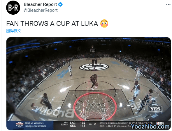 据篮网队记Kristian Winfield与独行侠队记Callie Caplan报道,一名球迷将盛冰块的饮料杯朝场内扔去,朝向大致是往东契奇的方向,最后也是丢在了东契奇的身旁,东契奇的表情看起来对此不太高兴。