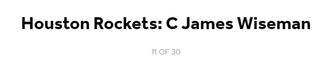 如果勇士的理想目标是伍德,那么火箭完全可以寻求怀斯曼作为回报。这位2020年的榜眼并没有在新秀赛季中做出太多贡献,场均21.4分钟内得到11.5分5.8篮板0.9盖帽,投篮命中率51.9%。