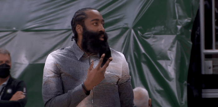 上半场,哈登疯狂庆祝十分抢镜,另外要说的是杜兰特惨遭PJ-塔克打脸以及挠眼,当时杜兰特眯着眼十分难受,不过裁判没有升级判罚,这只一次普通犯规。