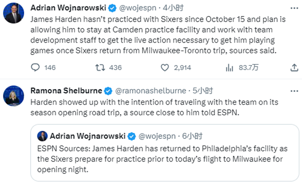 Shams在节目中再次谈到哈登,他表示:哈登过去十天都消失了,缺席了所有球队活动。过去整整一个月中,他只参加了一次5v5训练,也没有参加季前赛。我预计短期内不会看到哈登上场。