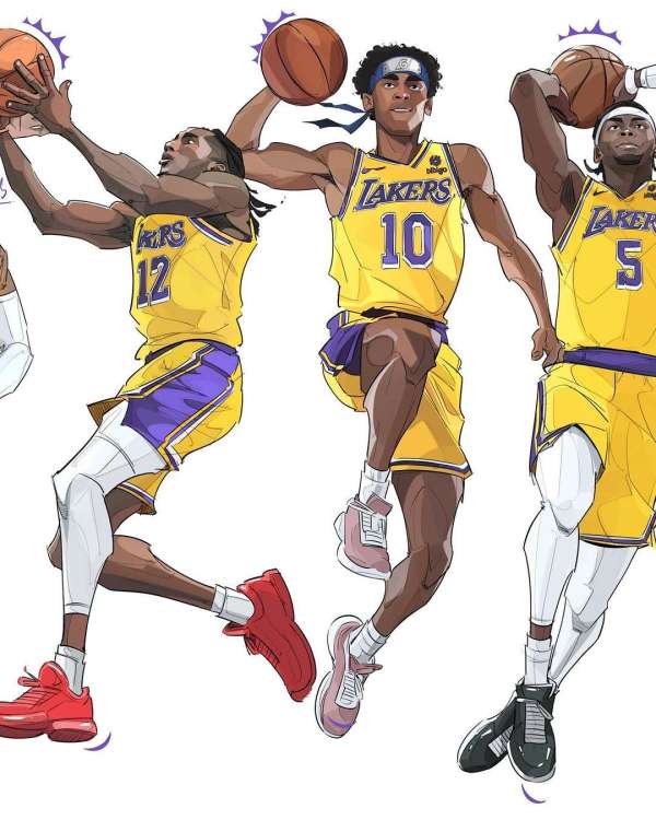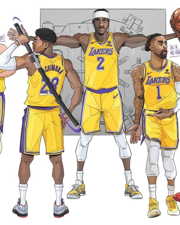 湖人全队漫画版合影:詹皇浓眉C位亮相 八村垒身背武士刀太抢镜