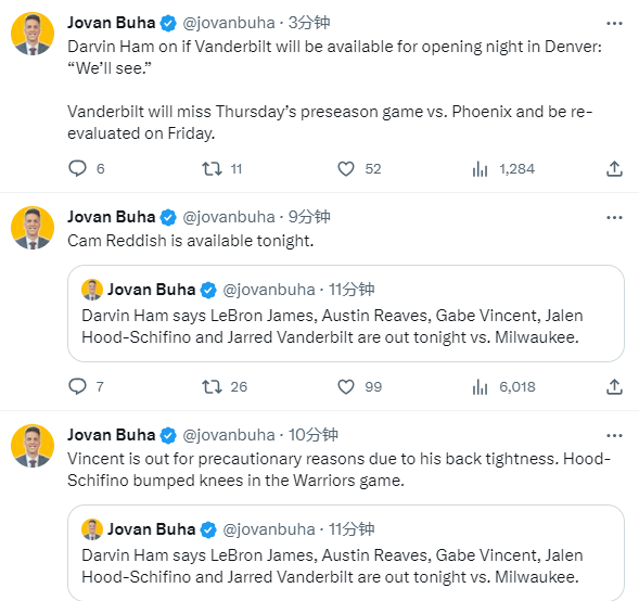 谈到范德比尔特伤势,哈姆表示:他因脚后跟伤势将缺席今天对阵雄鹿的比赛,下一场对阵太阳也不会出战,他将在本周五接受复查。