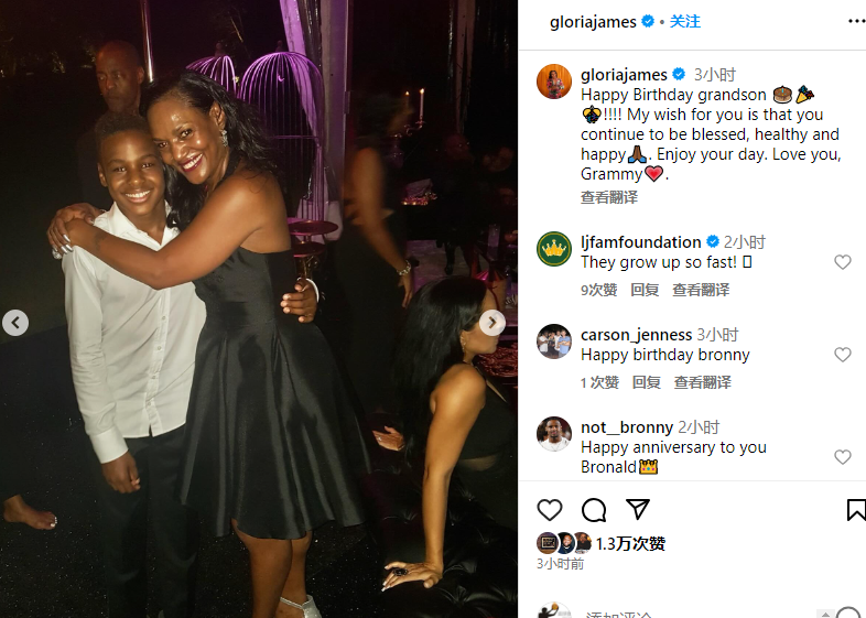 格洛丽亚晒照祝贺布朗尼,写道:孙子生日快乐!我对你的愿望是希望你继续幸福、健康、快乐享受你的一天。 爱你。