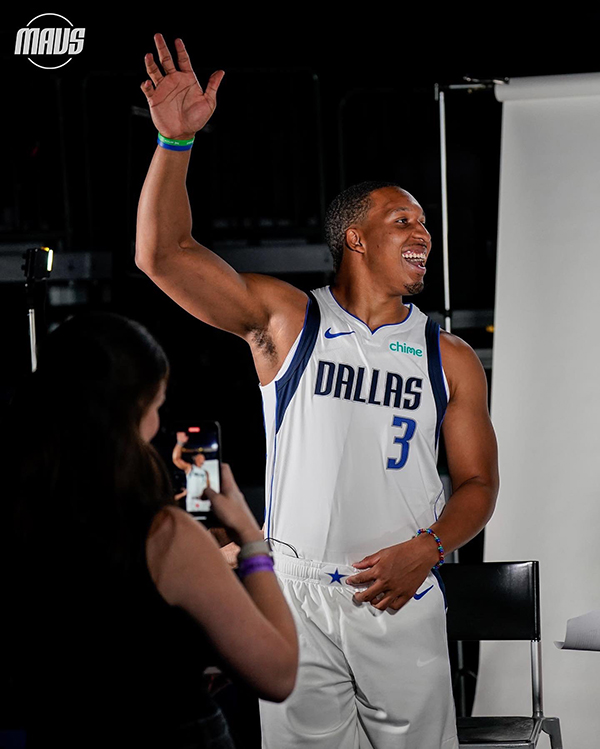 独行侠众将正式拍摄定妆照,东契奇一手抱球一手拿着自己的大头造型,满脸笑容十分开心,还拿相机给别人拍照;欧文同样笑容满脸,正式身穿独行侠11号球衣亮相,今夏欧文续签3年1.26亿美元大合同,并且决定改穿独行侠11号球衣。