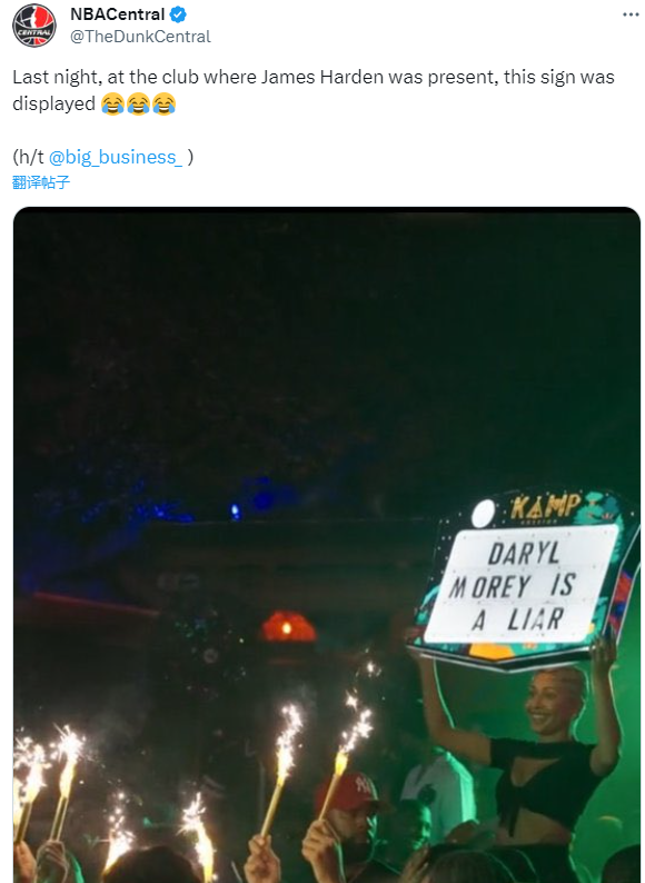 24直播网09月28日讯 ,哈登在夜店举办的狂欢派对曝光,现场美女如云尽情热舞,美女高举写着“莫雷是大骗子”的标牌;哈登离队引来转机,76人记者表示费城愿意用哈登换霍勒迪,另一名记表示76人搭上选秀权有望促成交易。