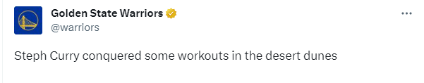 库里身穿浅色短裤和红色长袖,在迪拜炎热的沙漠中进行赤脚奔跑训练,这训练强度很大;勇士官方转发视频并且写道:库里在沙漠中完成了一些训练。
