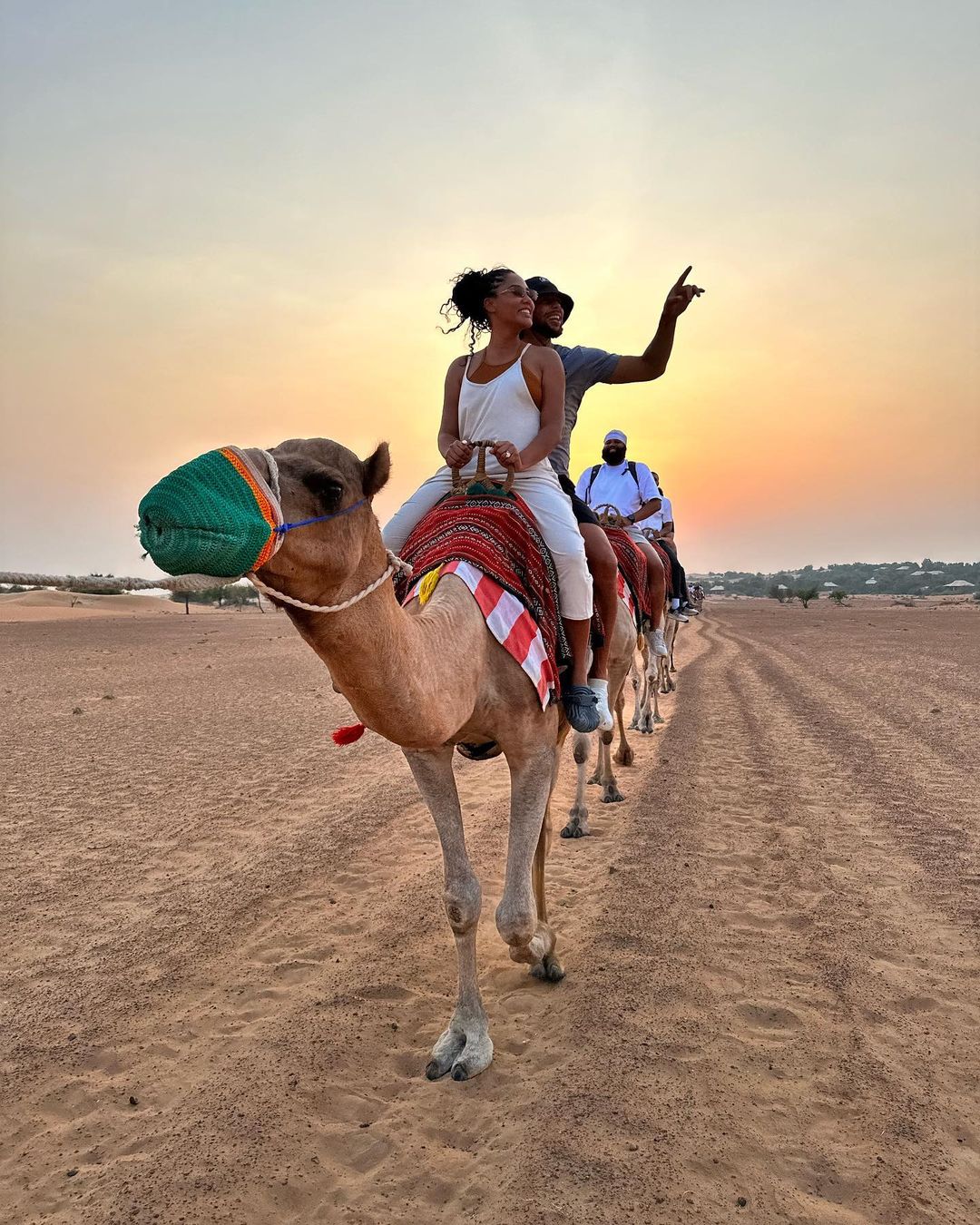 最近一段时间,库里和阿耶莎在迪拜度假,同骑骆驼畅游沙漠、享受当地美食、观赏沙漠落日余晖;库里夫妇还在沙漠中享受浪漫的二人世界,阿耶莎躺在沙漠中彻底放松自我,两人一起散步以及坐在沙漠中亲吻;度假期间,库里仍旧坚持苦练,在沙漠中光脚奔跑太疯狂。