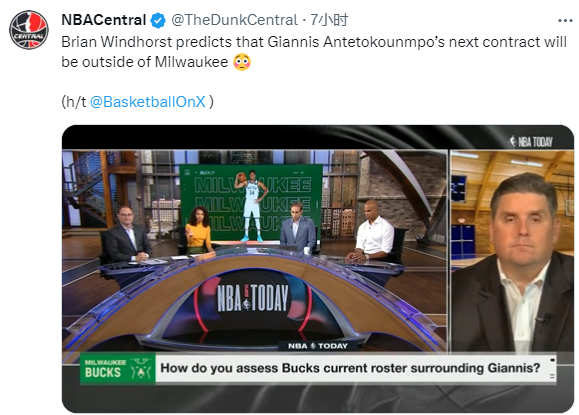 不久前,名嘴Brian Windhorst在《NBA Today》节目表示,预计字母哥的下一份合同不会和雄鹿队签,而是签约其他球队。