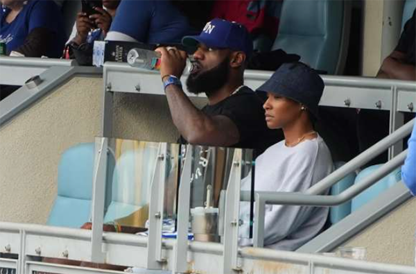 詹姆斯观战道奇队比赛:脱帽致敬疯狂庆祝 现场获赠10万美元家庭基金